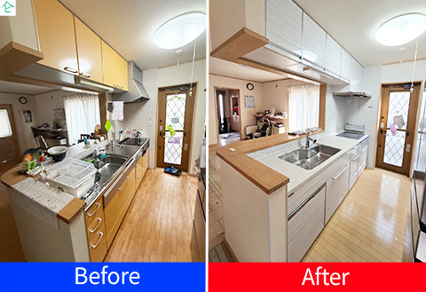 |キッチン改修工事 ~ピンク色の明るいキッチンに~