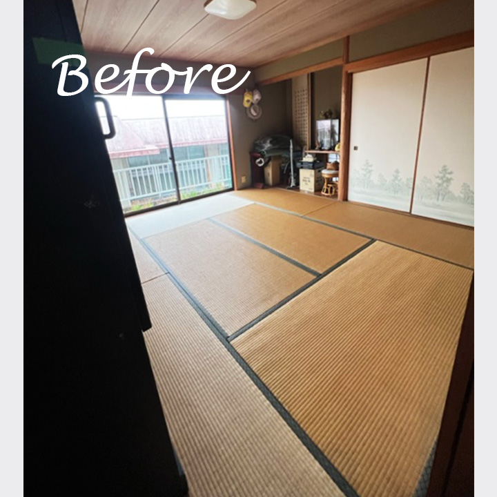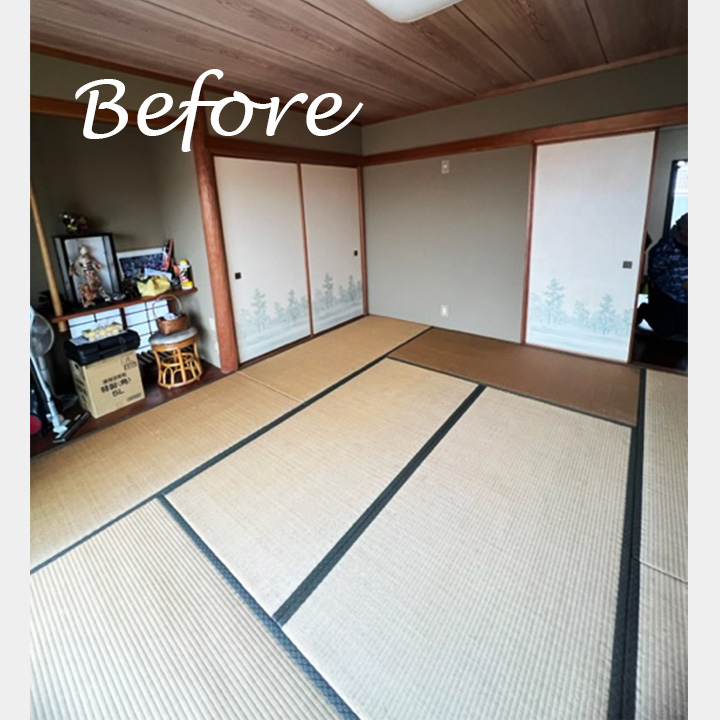 ◆既存の畳をすべて撤去・処分し、琉球畳への畳新調、ふすま張替え、網戸新調を行い、和室全体を明るく快適な空間へと一新しています✨